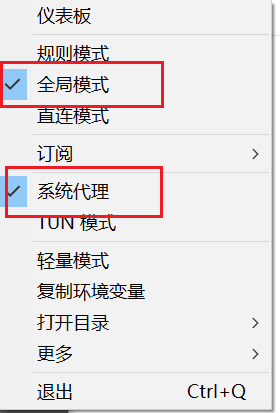 启用系统代理+全局模式